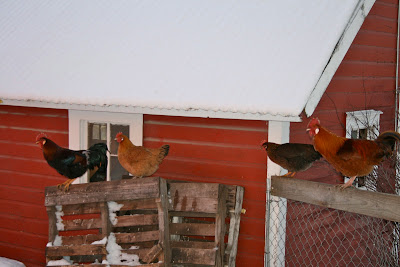 The sunny chicken coop photo and the icicles with shadows were snapped yesterday. We had bright sunshine for about half an hour in the morning, during which I roof-raked snow off the solar panels so they could generate power. You must have been sleeping in, Dawn! : )