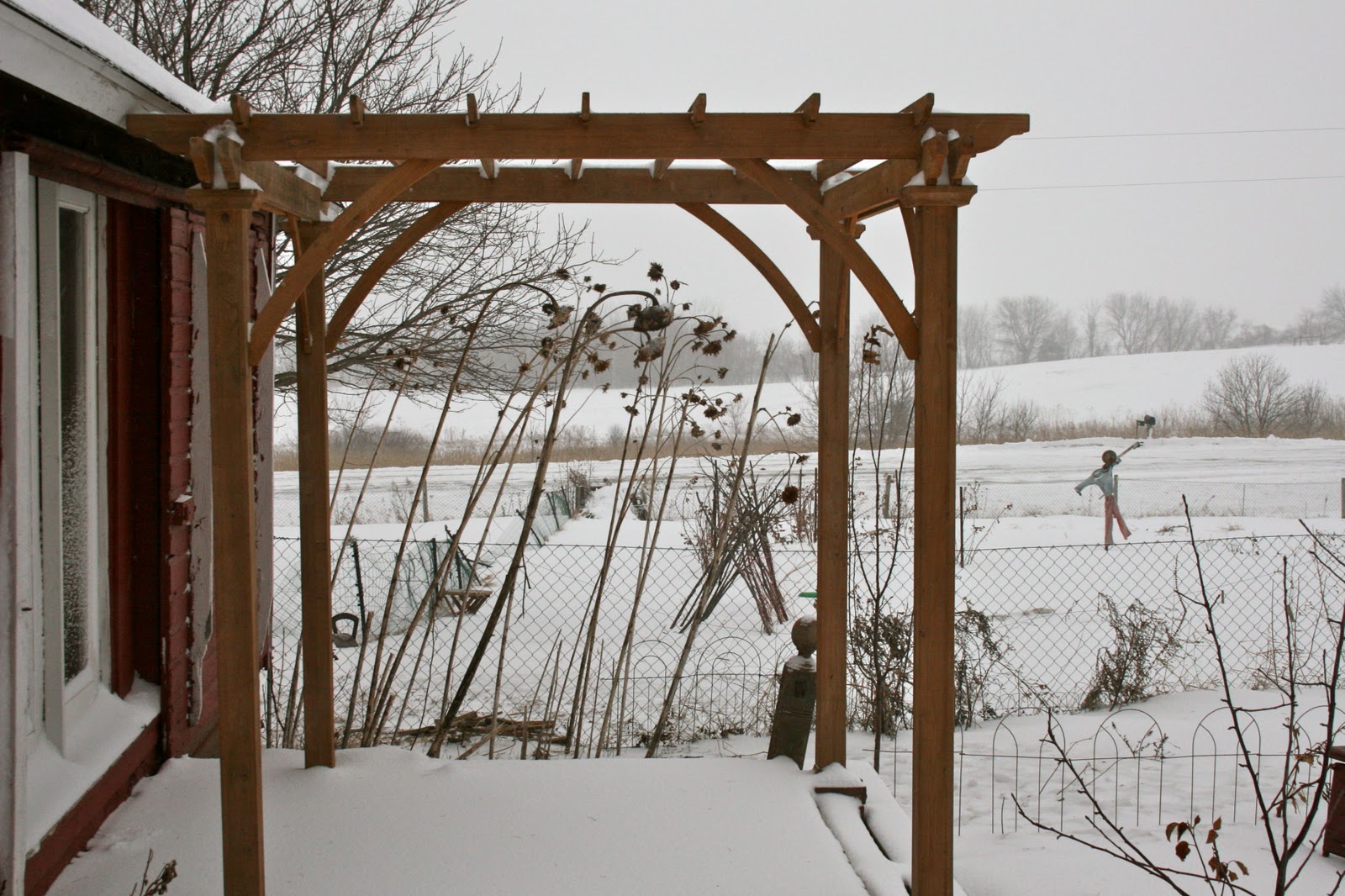Beyond the granary arbor in the garden, the scrawny scarecrow danced in the blizzard.